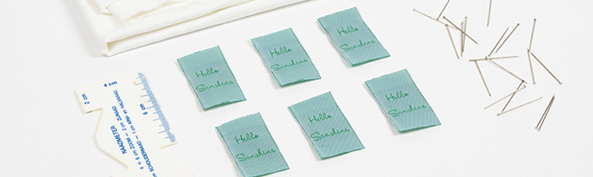 Set of 6 lightblue labels with bright blue text, size 40 x 100 mm.Material: polyester with woven edges for super soft sides.The labels are packed per piece, ready to sew in!